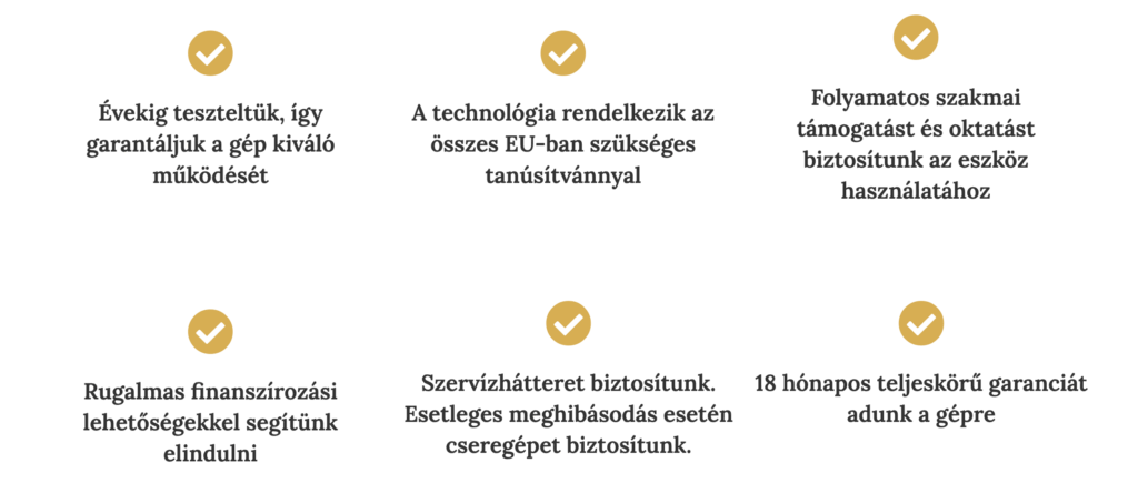 A gép nagy teljesítménye révén kevesebb kezeléssel több vendéget szolgálhatsz ki, így a beruházásod rövid időn belül megtérül.